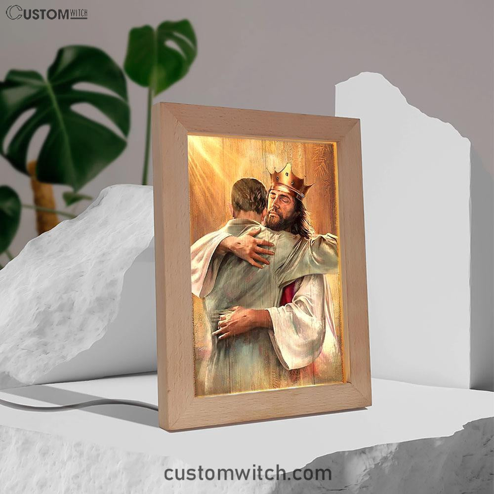 Jesus The King Frame Lamp - A Heartwarming Hug From Jesus Art Frame Lamp - Jesus Portrait Frame Lamp Prints - Christian Art