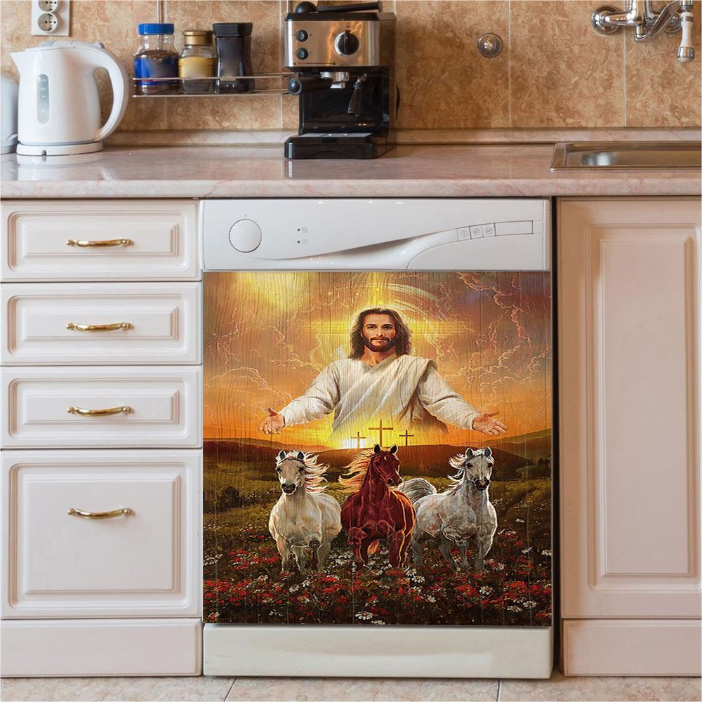 Jesus Three Old Rugged Cross Dishwasher Cover, Christian Dishwasher Wrap, Bible Verse Kitchen Decoration