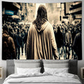 Jesus Walking Modern City Among Crowds Tapestry Pictures - Faith Art - Christian Tapestry Wall Art Decor