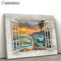Jesus Walking On The Beach Window Frame Canvas Art - Bible Verse Wall Art - Wall Decor Christian