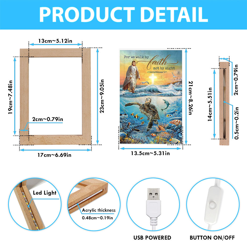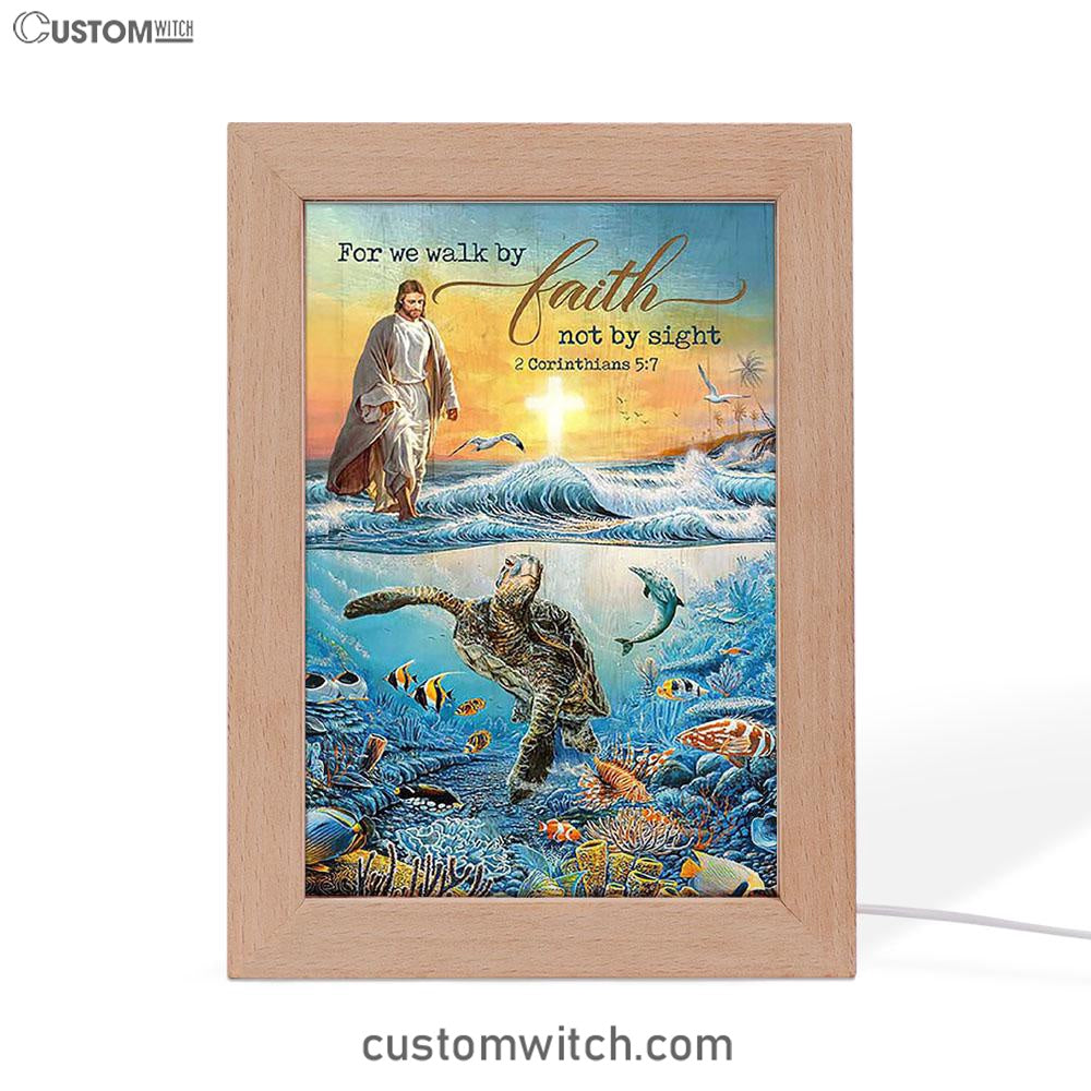Jesus Walking On Water Frame Lamp - For We Walk By Faith Ocean Turtle Art Frame Lamp - Jesus Portrait Frame Lamp Prints - Christian Art