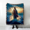 Jesus Walking On Water Woven Blanket Print - Jesus Boho Blanket - Christian Throw Blanket