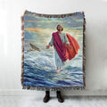 Jesus Walking On Water Woven Blanket Prints - Religious Woven Blanket Art - Christian Boho Blanket