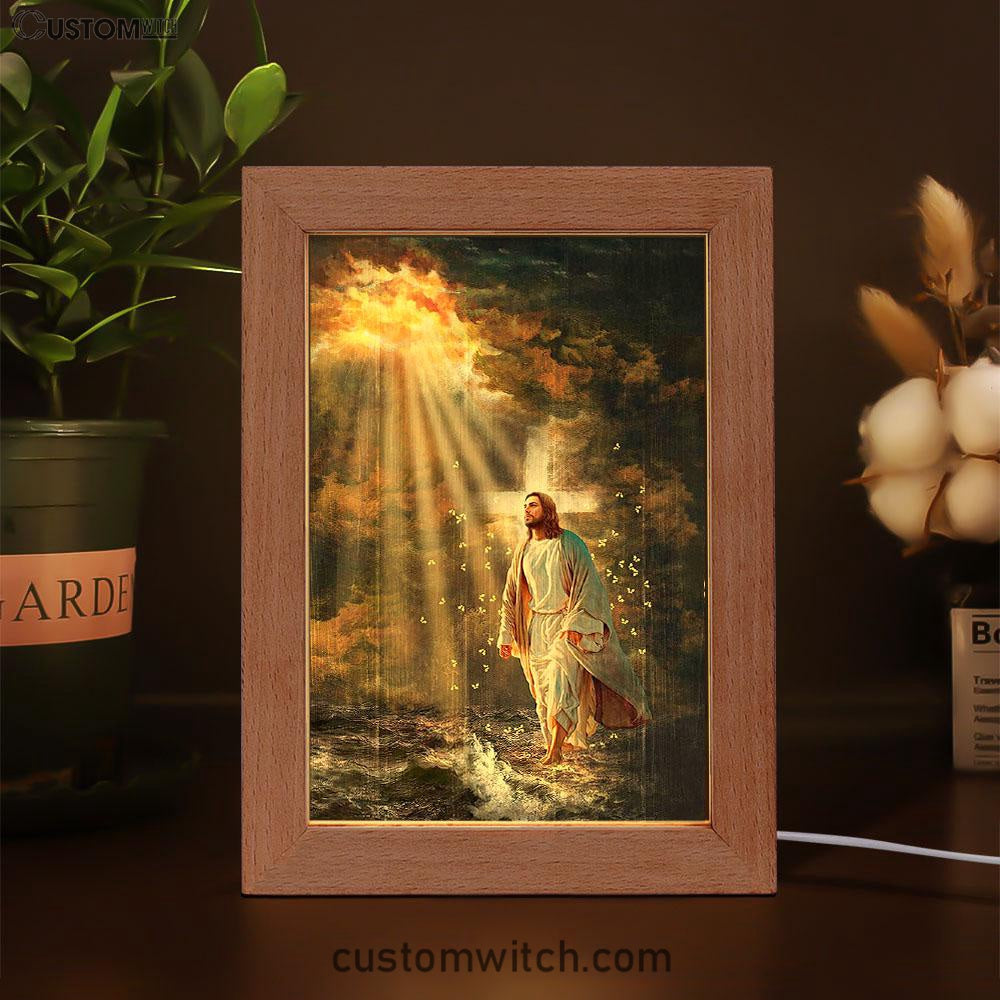 Jesus Walking On Water Yellow Butterfly Frame Lamp Art - Christian Art - Bible Verse Art - Religious Home Decor