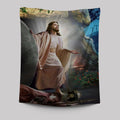 Jesus Walking Out Of Tomb Tapestry Pictures - Jesus Art Prints - Jesus Art - Christian Indoor Wall Tapestries