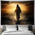 Jesus Walking Water Sunset Tapestry Pictures - Faith Art - Christian Tapestry Wall Art Decor