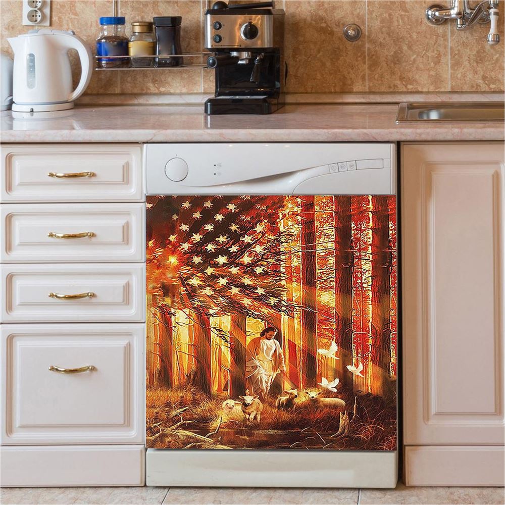 Jesus Walking With Lamb And Lion Dishwasher Cover, Christian Dishwasher Wrap, Bible Verse Kitchen Decoration