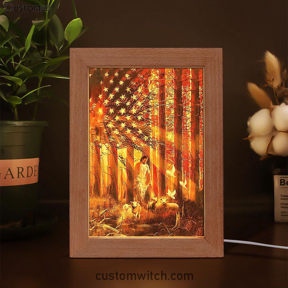 Jesus Walking With The Lambs In Forest Frame Lamp Art - Christian Art - Bible Verse Art - Religious Home Decor