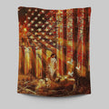 Jesus Walking With The Lambs In Forest Tapestry Art - Christian Art - Bible Verse Wall Art - Religious Home Decor
