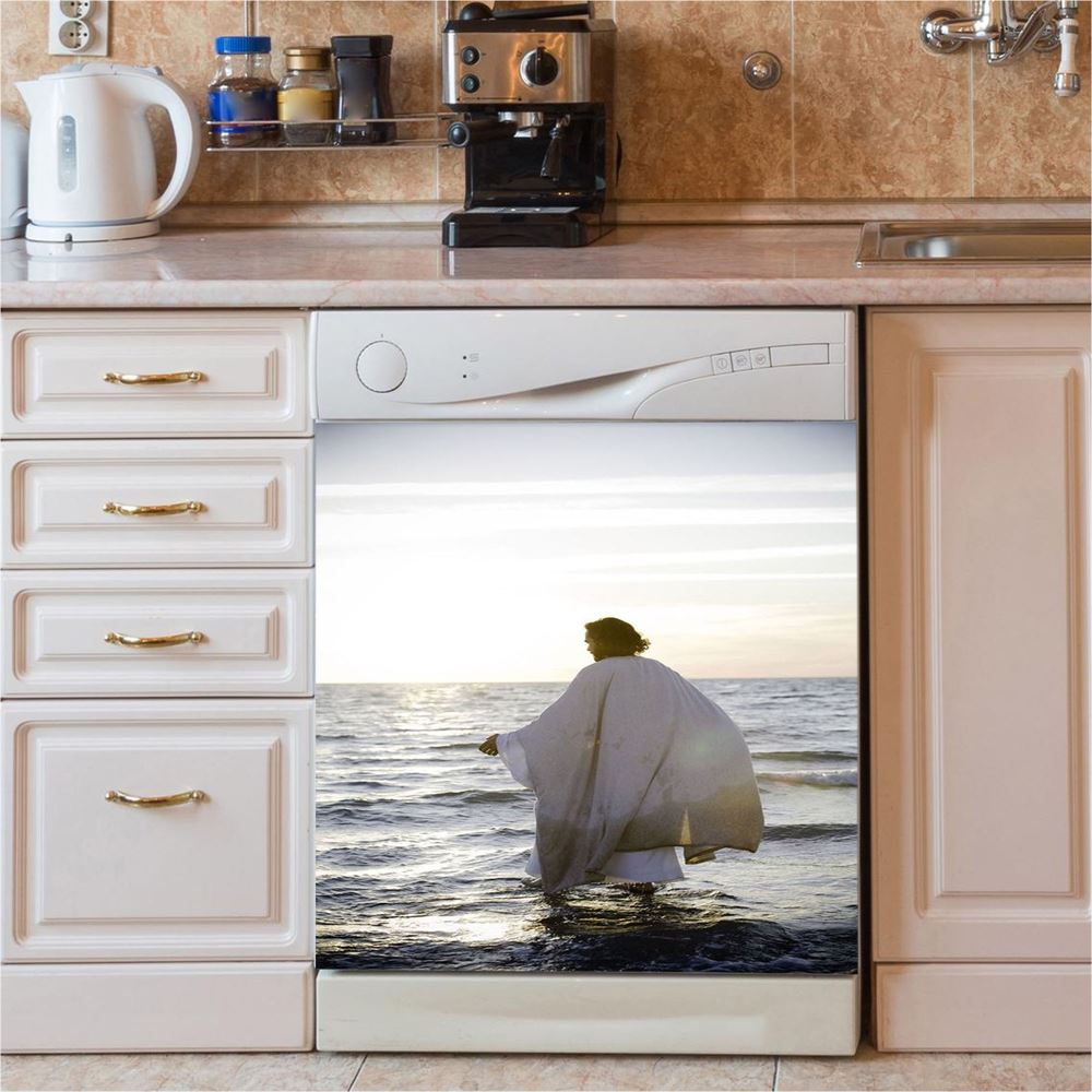 Jesus Walks On Water Cross Light Dishwasher Cover, Jesus Portrait Dishwasher Wrap, Christian Kitchen Decoration