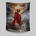 Jesus Walks On Water Cross Light Wall Art Tapestry - Jesus Portrait Tapestry Prints - Christian Wall Art