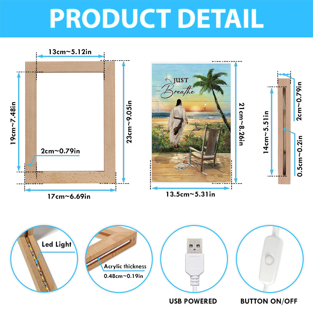 Jesus Walks Sunset Beach Just Breathe Frame Lamp - Christian Art - Religious Home Decor