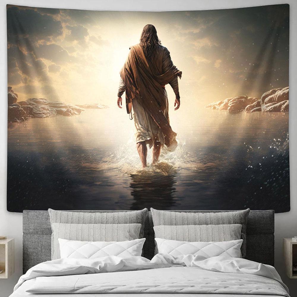 Jesus Walks Water Tapestry Pictures - Faith Art - Christian Tapestry Wall Art Decor