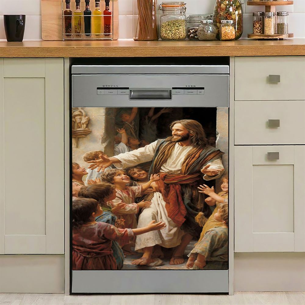Jesus Was Surrounded By Children Dishwasher Cover, Jesus Dishwasher Wrap, Christian Kitchen Decoration