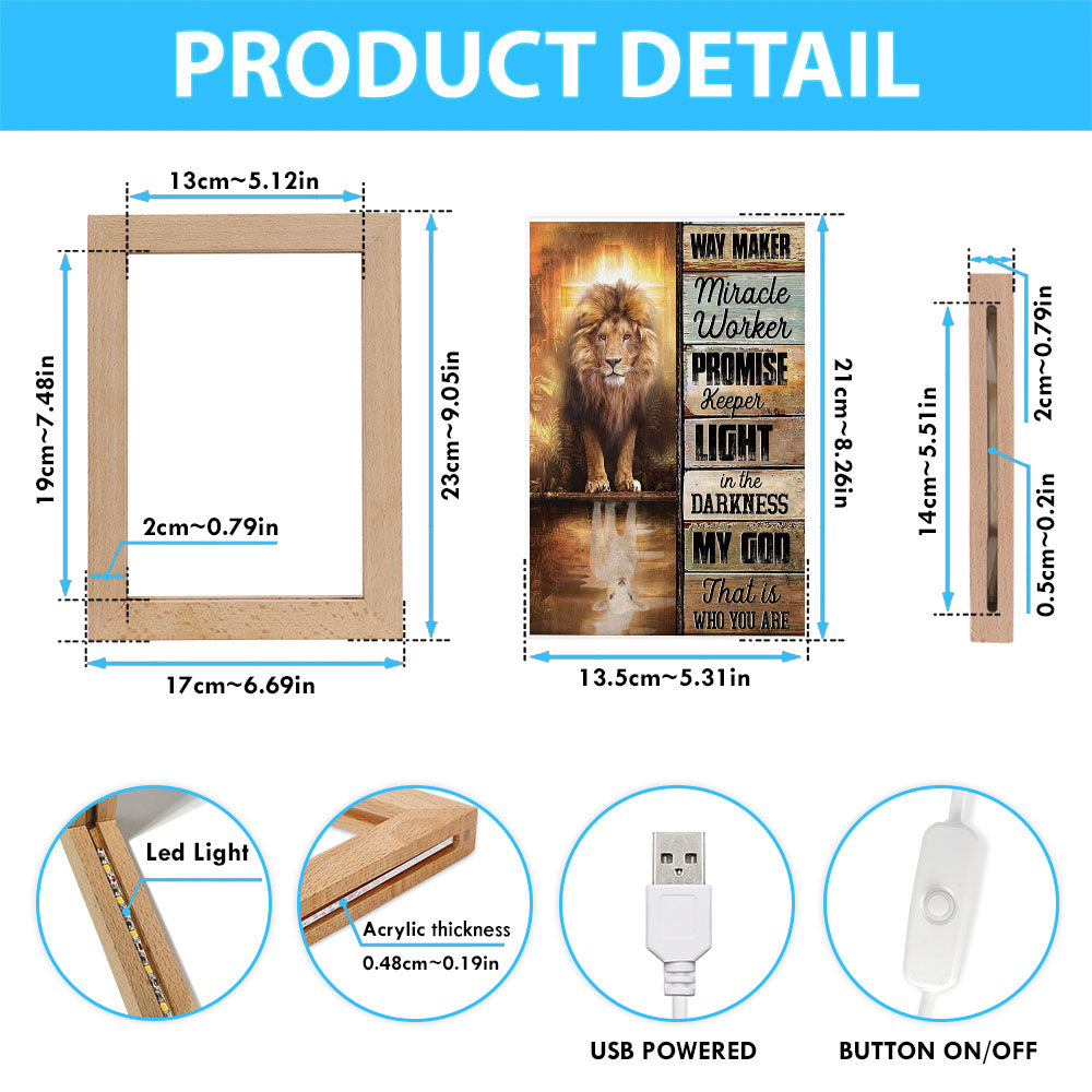 Jesus Way Maker Lion Of Judah Frame Lamp Prints - Bible Verse Decor - Scripture Art