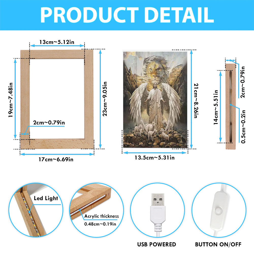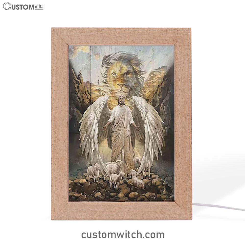 Jesus Wings Lamb Lion Frame Lamp Prints - Lion Frame Lamp Art - Christian Inspirational Frame Lamp