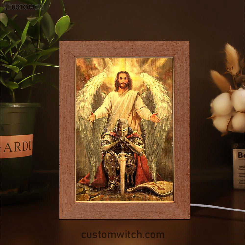 Jesus Wings Warrior Of God Art Frame Lamp - Jesus Portrait Frame Lamp Prints - Christian Art