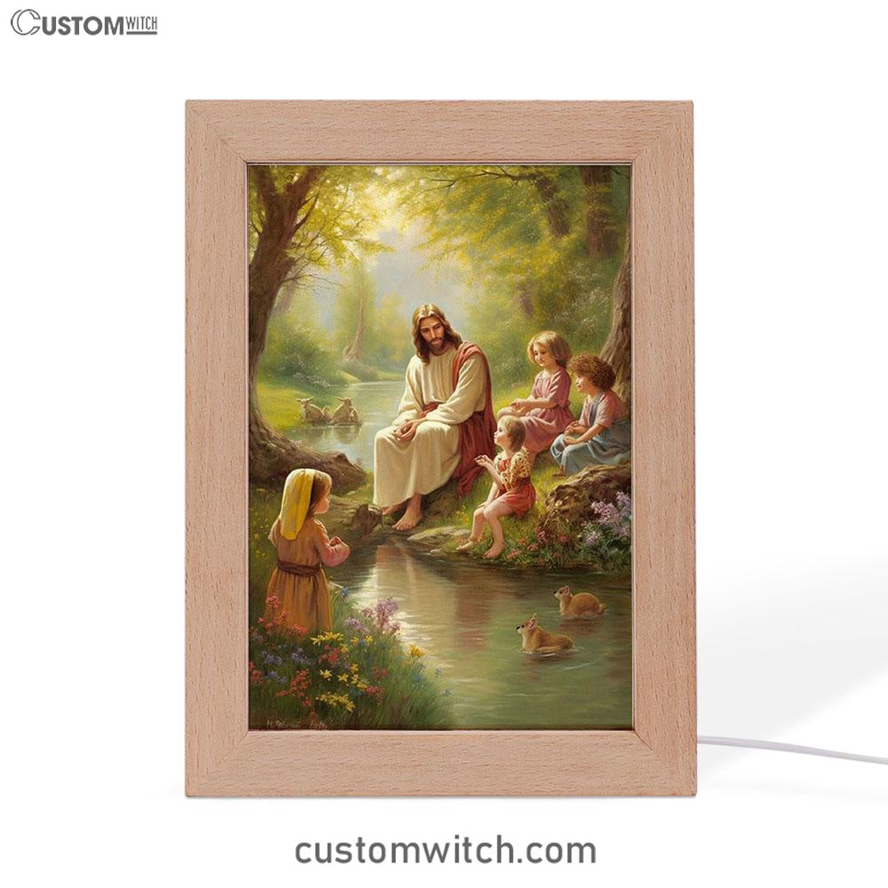 Jesus With Children Frame Lamp Prints - Jesus Frame Lamp Art - Christian Art Decor