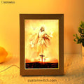 Jesus With Dove Sunset Wooden Cross Frame Lamp Art - Christian Night Light - Bible Verse Wooden Lamp