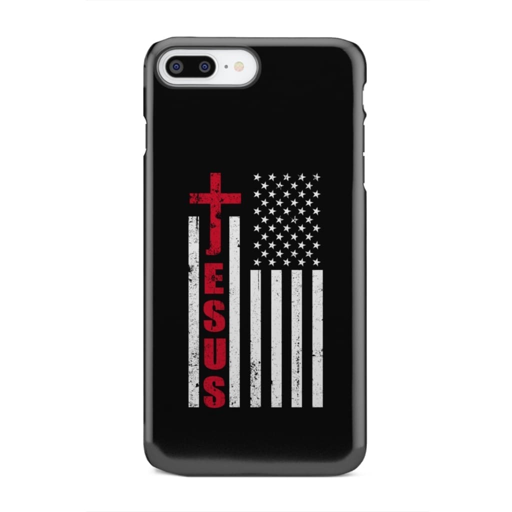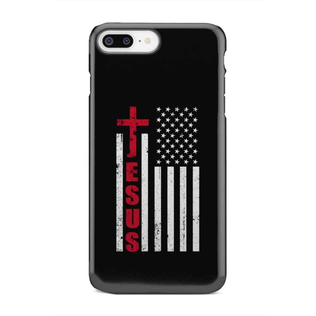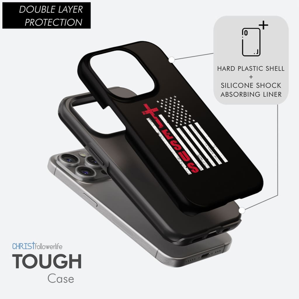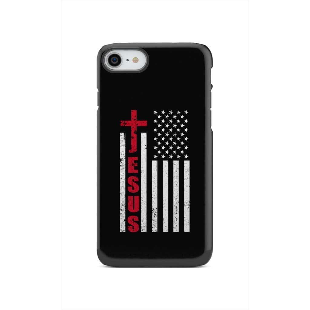 Patriotic phone cases: Jesus word cross with American flag Christian phone case