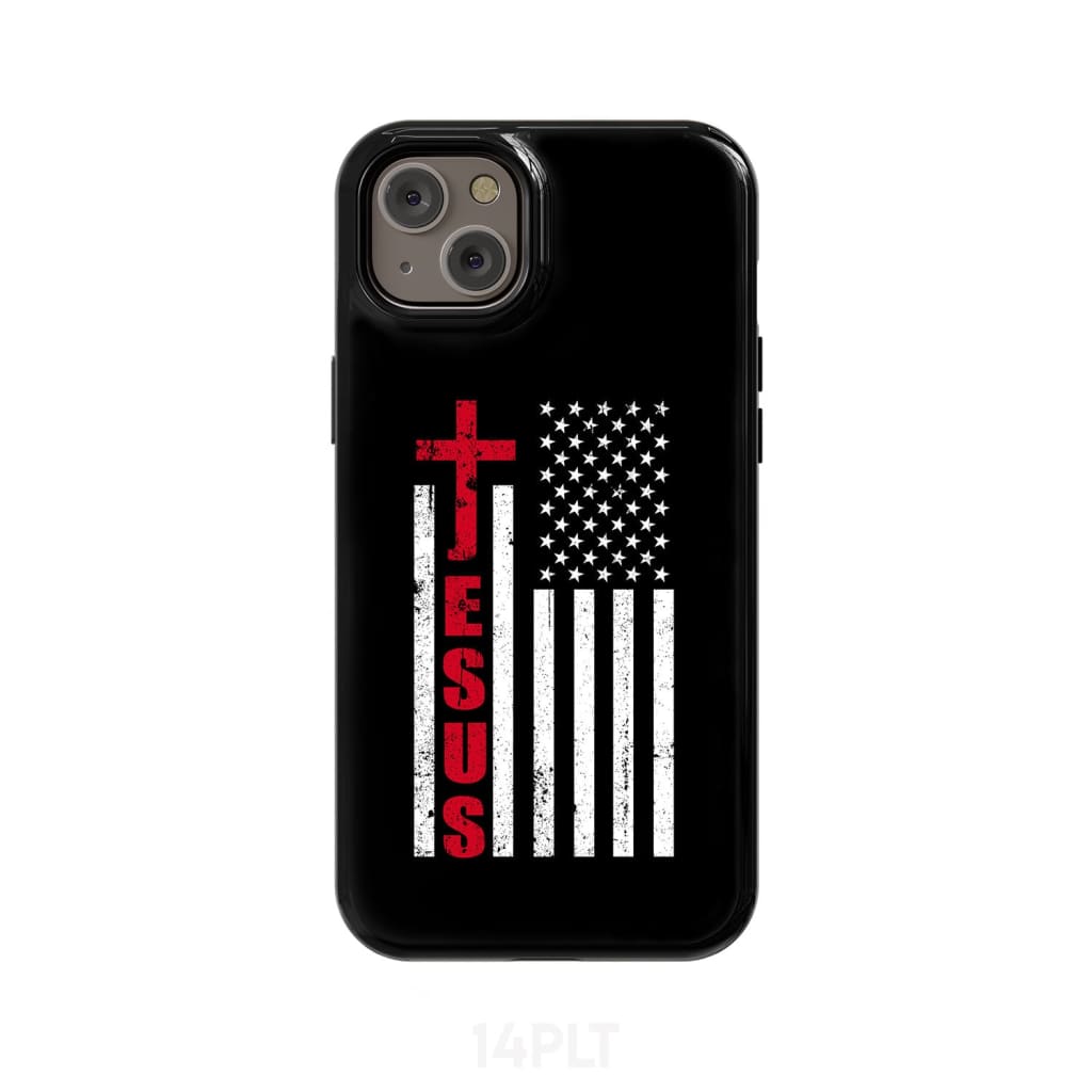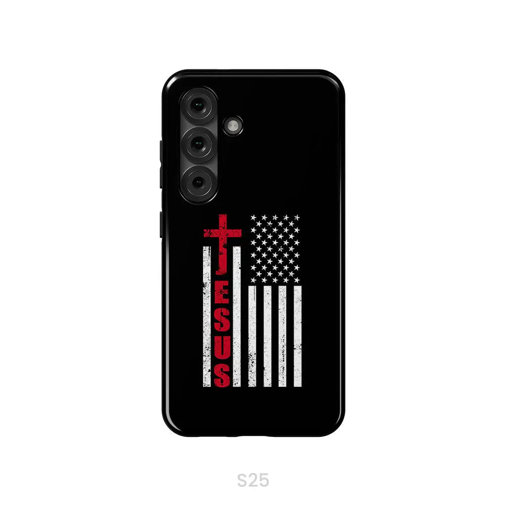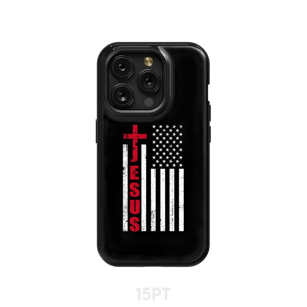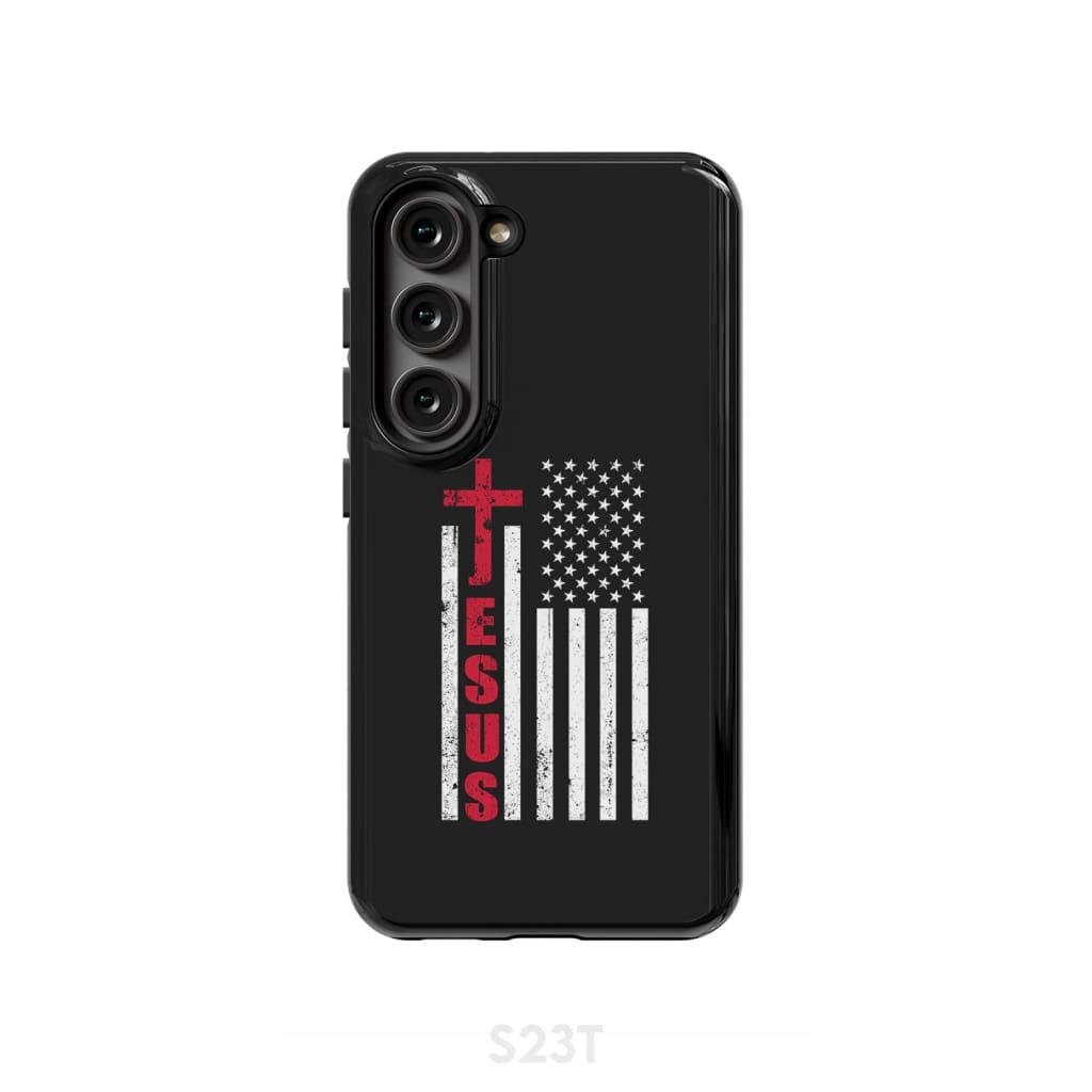 Patriotic phone cases: Jesus word cross with American flag Christian phone case