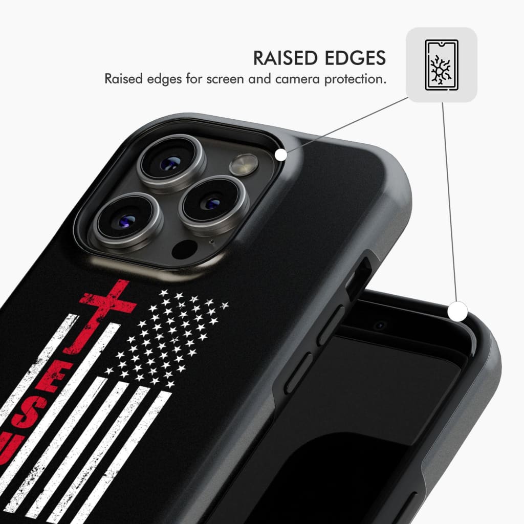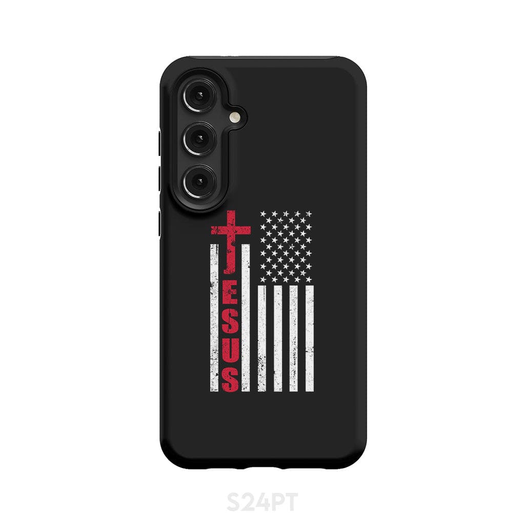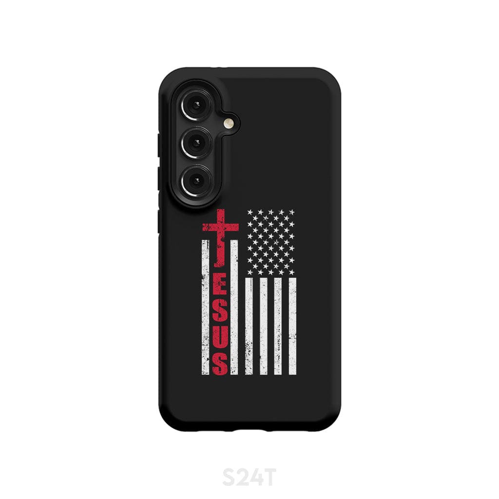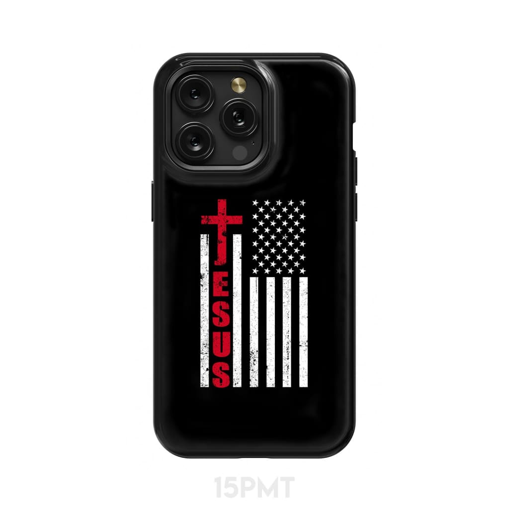 Patriotic phone cases: Jesus word cross with American flag Christian phone case