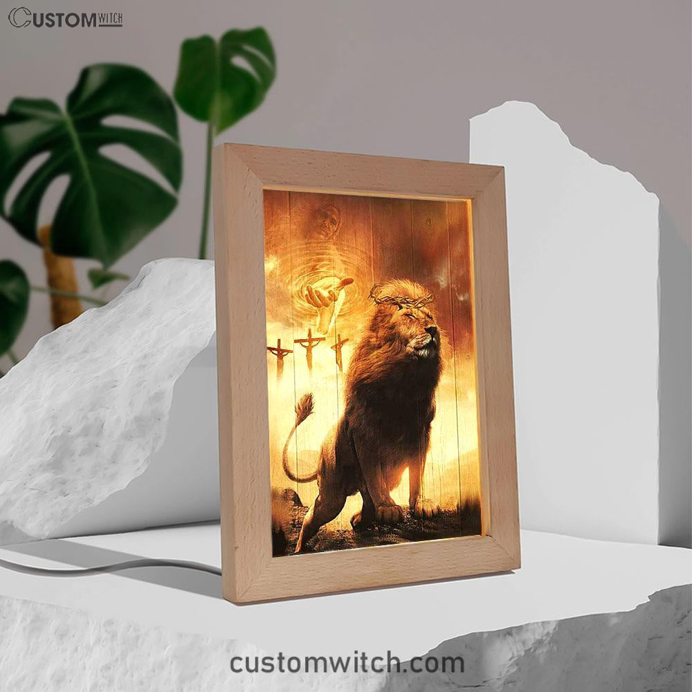 Jesus's Hand Lion Of Judah Crosses Art Frame Lamp - Jesus Portrait Frame Lamp Prints - Christian Art