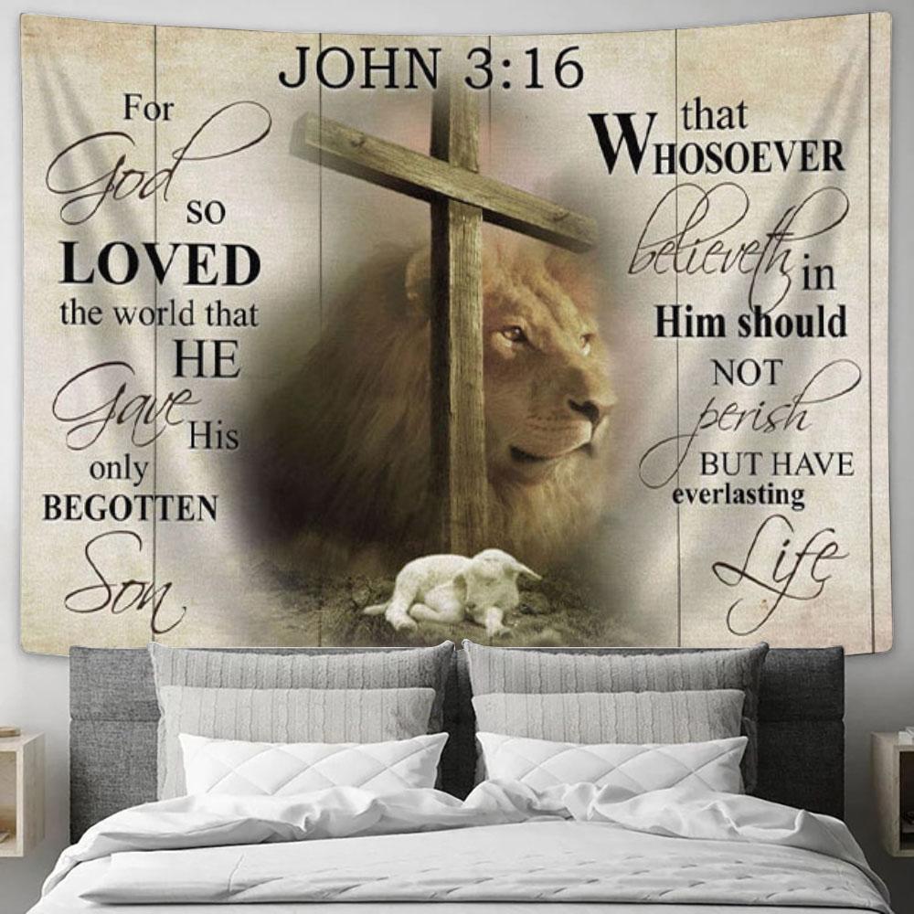 John 316 Wall Art For God So Loved The World John 316 Kjv Tapestry Print - Christian Wall Decor