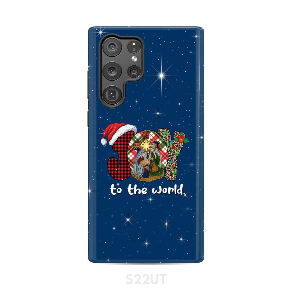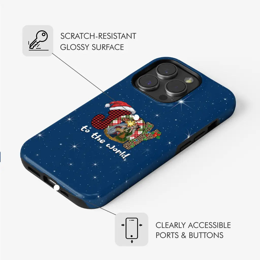 Joy to the world Buffalo plaid leopard phone case