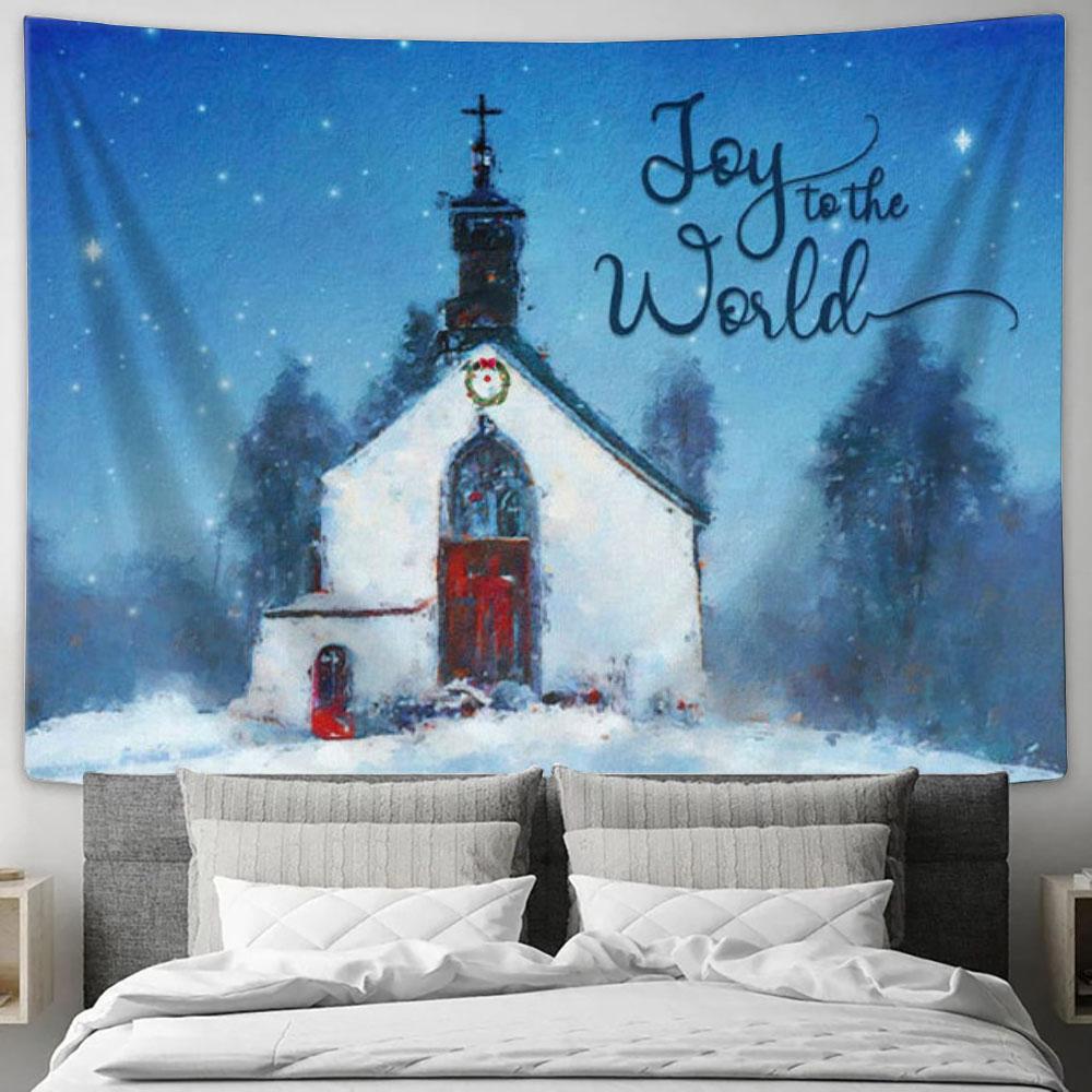 Joy To The World - Old Country Church - Christmas Tapestry Wall Art - Christian Wall Decor