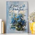 Just Breathe Blue Daisy Butterfly Canvas - Christian Wall Art - Religious Home Decor