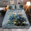 Just Breathe Blue Daisy Butterfly Quilt Bedding Set - Christian Bedroom - Religious Home Decor