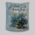 Just Breathe Blue Daisy Butterfly Tapestry - Christian Wall Art - Religious Home Decor