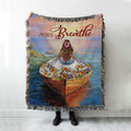 Just Breathe Boat Flower Elegant Girl Sunset Woven Throw Blanket - Christian Woven Blanket Prints - Bible Verse Woven Blanket Art