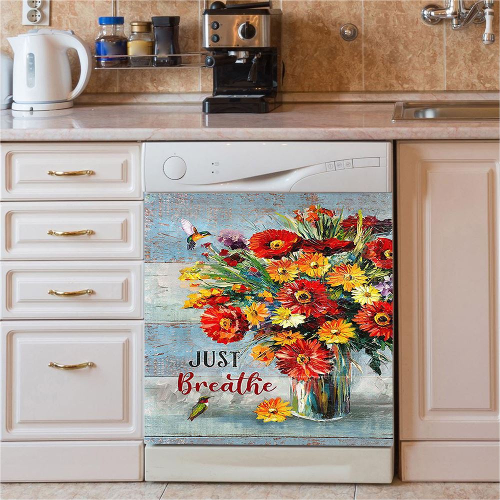 Just Breathe Brilliant Flower Hummingbird Dishwasher Cover, Christian Dishwasher Wrap, Religious Kitchen Decoration