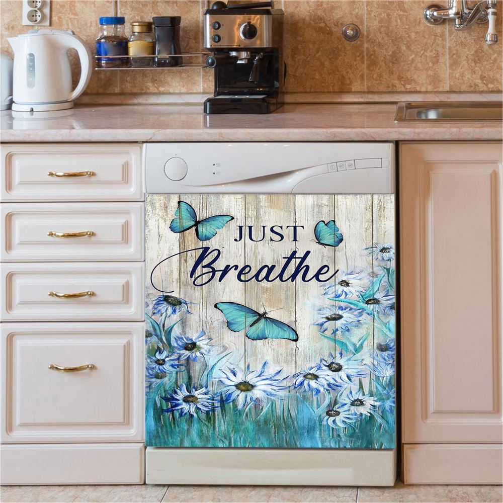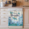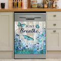 Just Breathe Butterfly Blue Flower Garden Dishwasher Cover, Christian Dishwasher Wrap, Bible Verse Kitchen Decoration