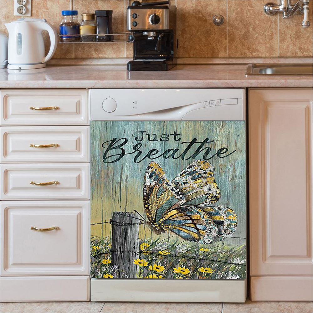 Just Breathe Butterfly Yellow Daisy Dishwasher Cover, Christian Dishwasher Wrap, Bible Verse Kitchen Decoration
