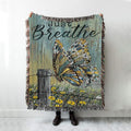 Just Breathe Butterfly Yellow Daisy Woven Throw Blanket - Christian Woven Blanket Prints - Bible Verse Woven Blanket Art