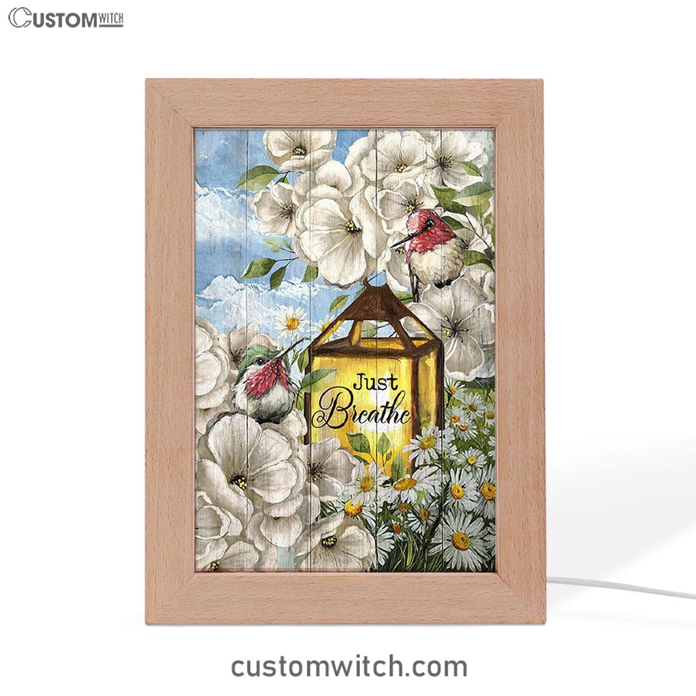 Just Breathe Camellia Forest Hummingbird Art Frame Lamp - Bible Verse Wooden Lamp - Christian Art Home Decor