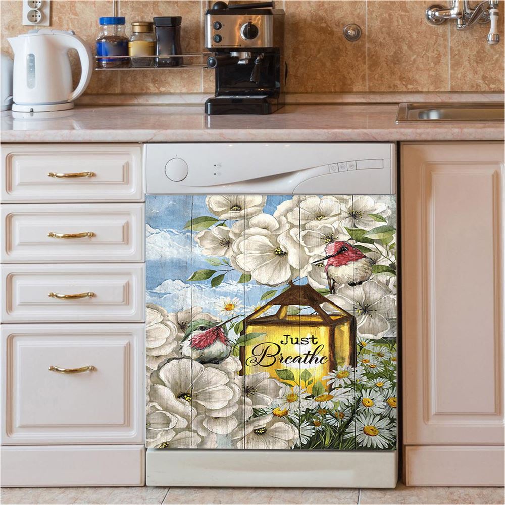 Just Breathe Camellia Forest Hummingbird Dishwasher Cover, Bible Verse Dishwasher Wrap, Christian Kitchen Decoration