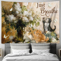 Just Breathe Flower Cat Cross Butterfly Large Tapestry - Christian Tapestry Prints - Religious Tapestry Art