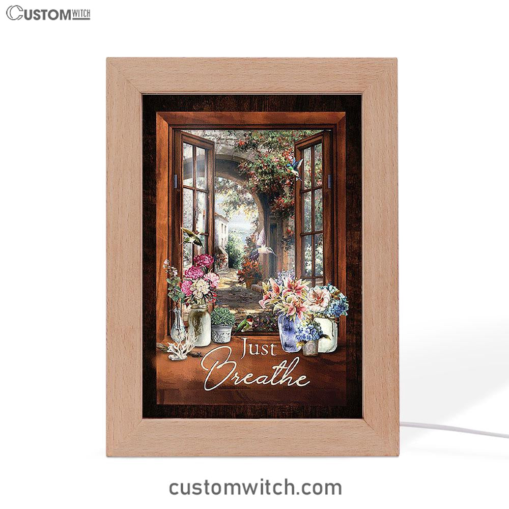 Just Breathe Flower Garden Hummingbird Frame Lamp - Christian Art - Religious Home Decor