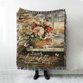 Just Breathe Flowers White Peony Ocean View Woven Throw Blanket - Bible Verse Woven Blanket Art - Inspirational Art - Christian Home Decor