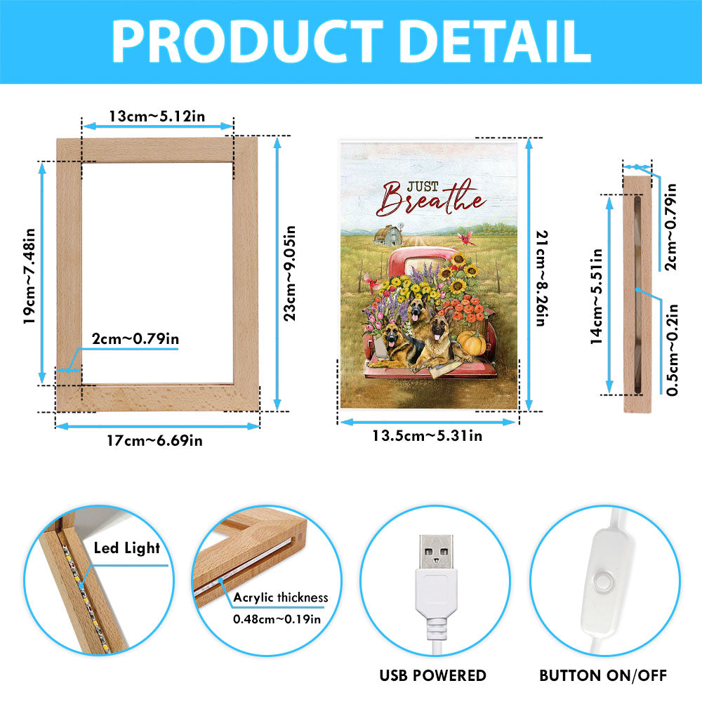 Just Breathe German Shepherd Dog Frame Lamp Art - Bible Verse Wooden Lamp - Inspirational Art - Christian Home Decor