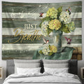 Just Breathe Green Hydrangeas Music Sheet Hummingbird Tapestry Art - Christian Wall Art Decor - Bible Verse Tapestry