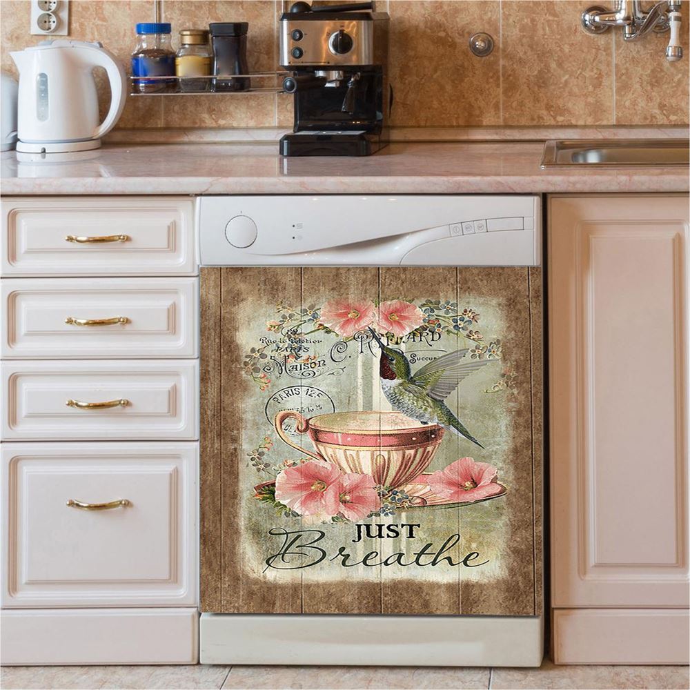 Just Breathe Hummingbird Rose White Peony Dishwasher Cover, Bible Verse Dishwasher Wrap, Christian Kitchen Decoration