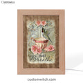 Just Breathe Hummingbird Tea Cup Pink Flowers Vintage Frame Lamp Art - Christian Night Light - Bible Verse Wooden Lamp