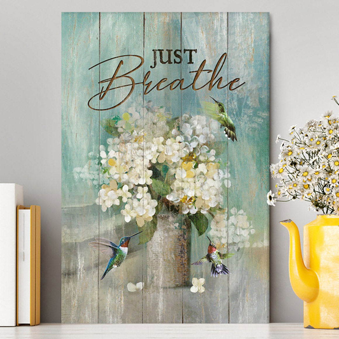 Just Breathe Hummingbird White Flower Wall Art Canvas - Bible Verse Canvas Art - Christian Wall Art Home Decor