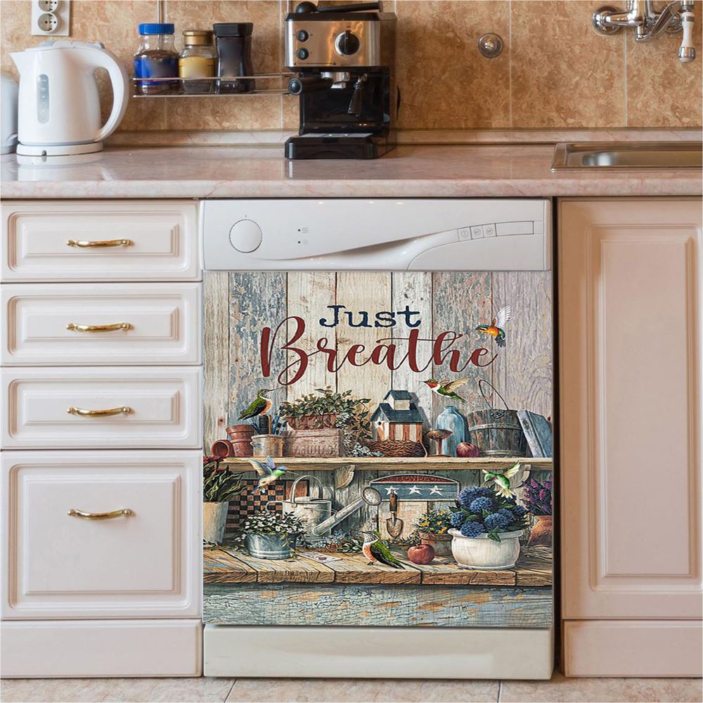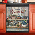 Just Breathe Hydrangeas Blue Flower Butterfly Dishwasher Cover, Bible Verse Dishwasher Wrap, Christian Kitchen Decoration