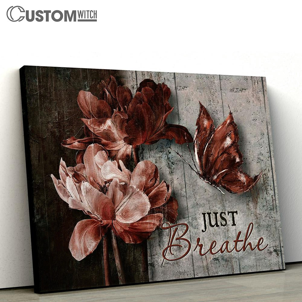 Just Breathe Luxury Flower Dark Red Butterfly Canvas Art - Christian Wall Art Decor - Bible Verse Canvas